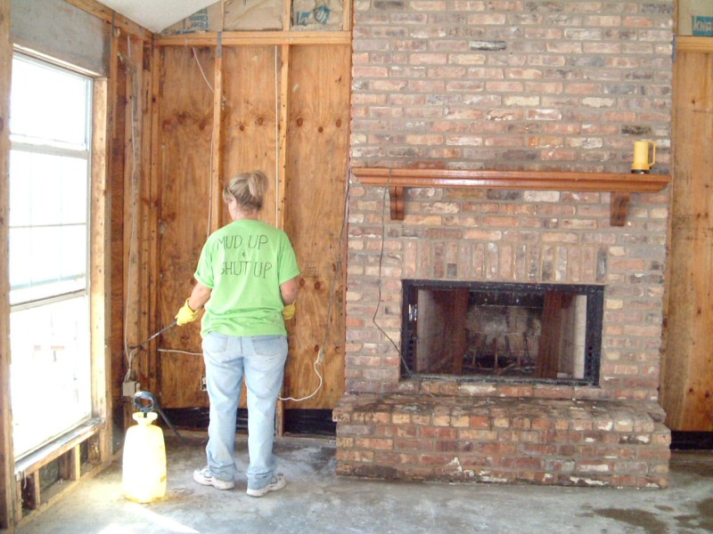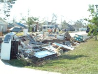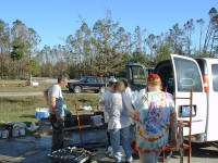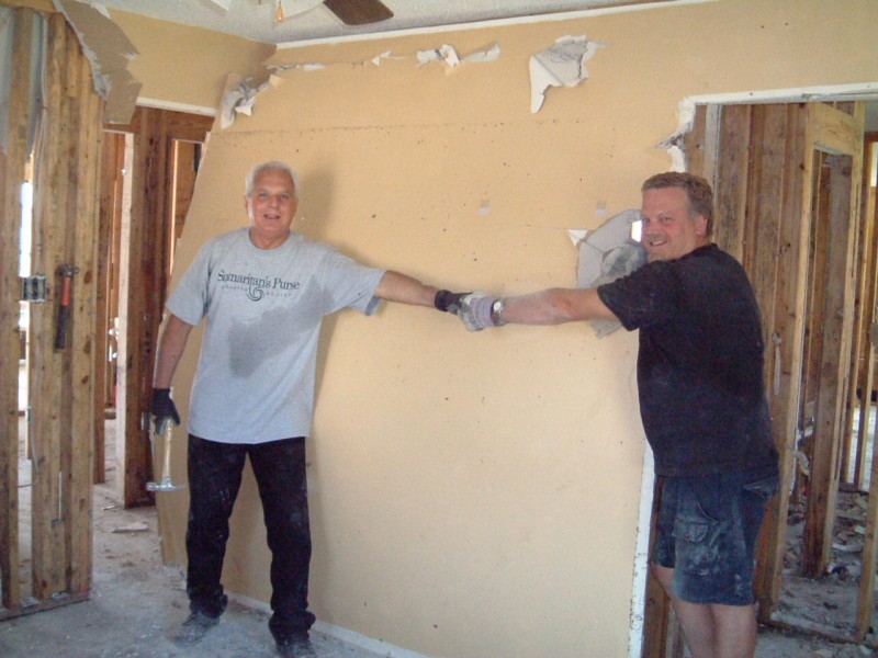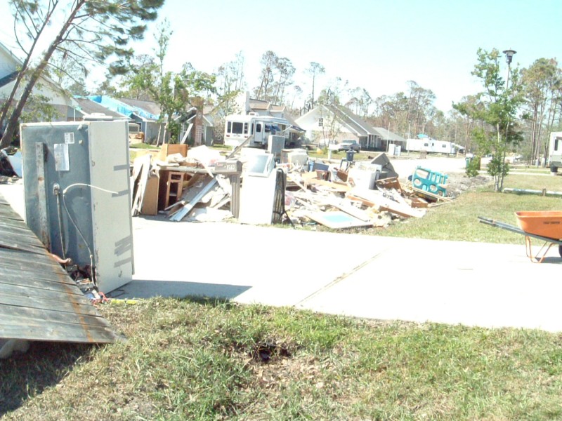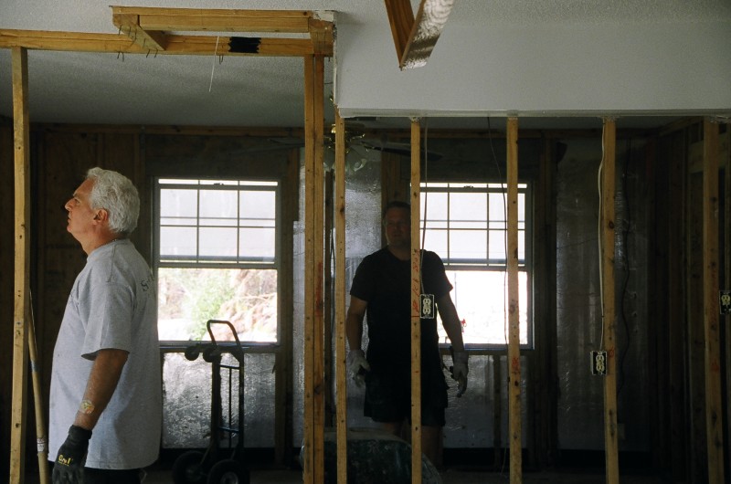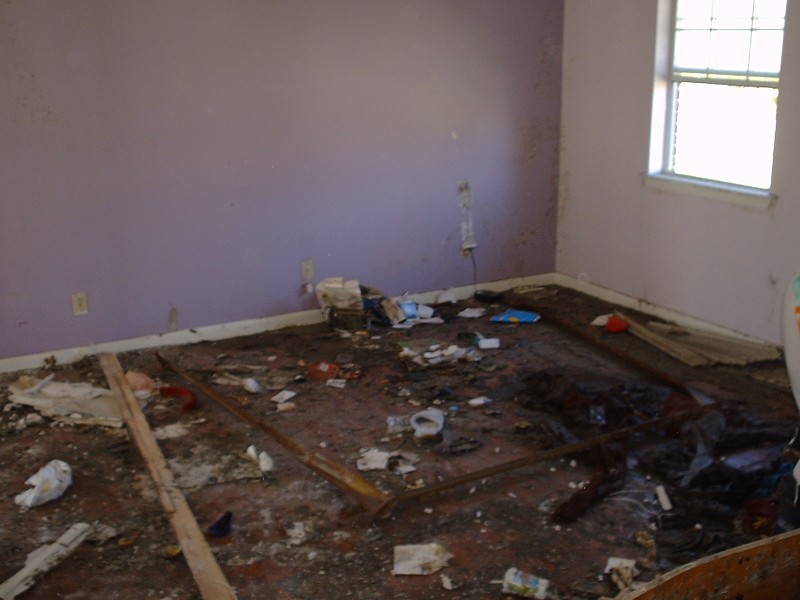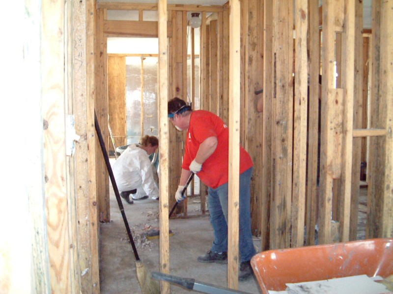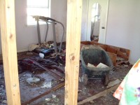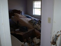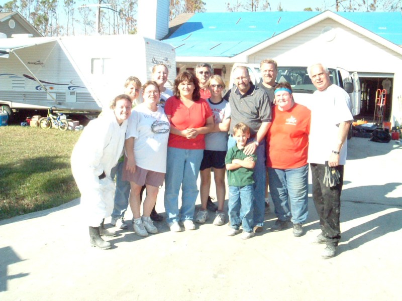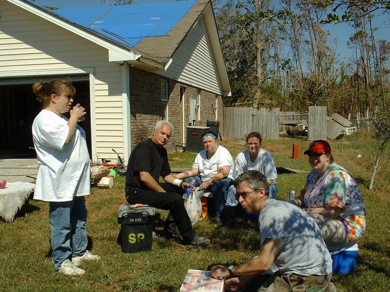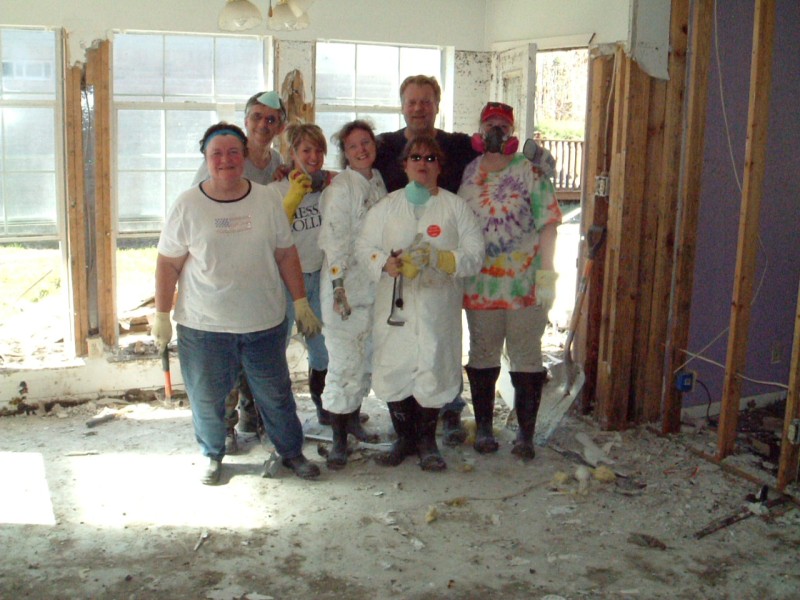 | The Sharpe's home was one of the most difficult we had to deal with on this trip. The 30-foot sea-surge had pretty much decimated the home and it's contents, and the Sharpes, who had recently received a FEMA trailer in front of the home, had a pretty difficult time in dealing with the situation. It brought us great joy, at the end of the project, to have Jo walk through the home and see hope in her eyes for future restoration of her home & life. Jamie was particularly touched by her interaction with Jo's daughter, Anna, which you can read about in the "Articles" area of this site. |
